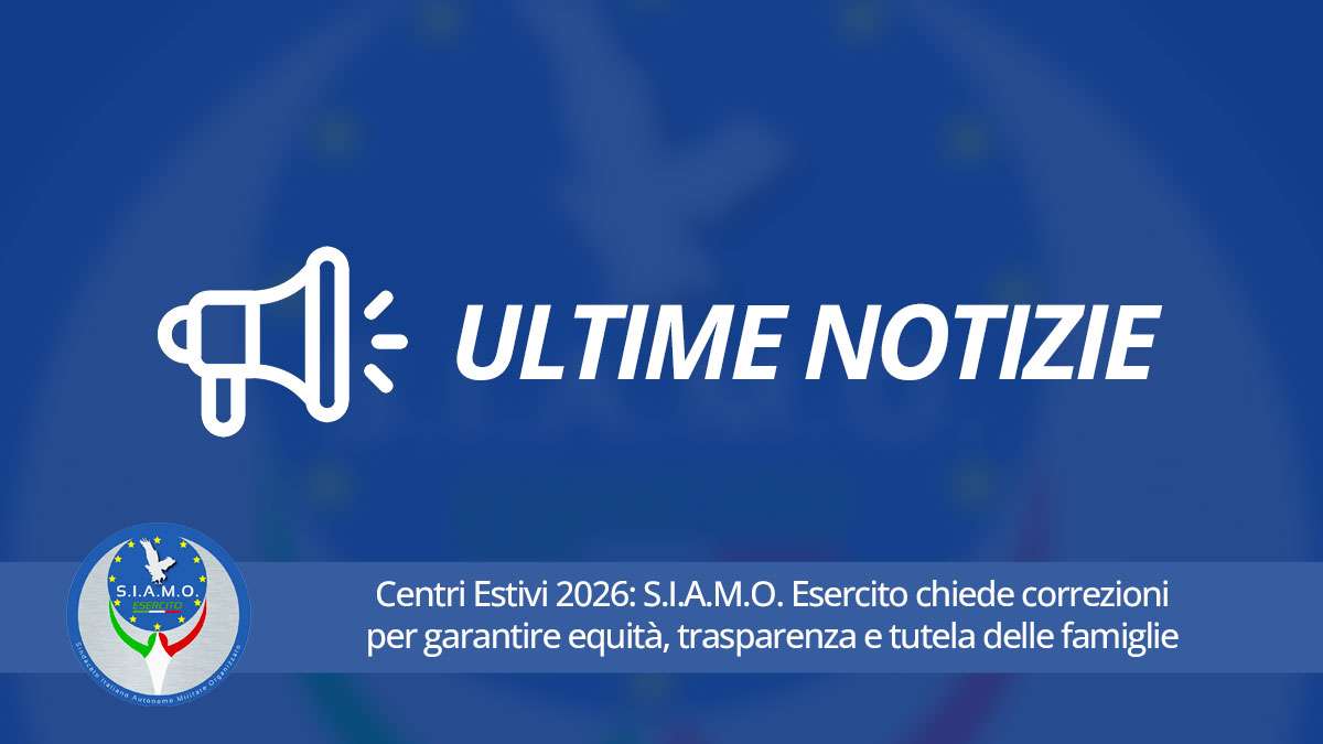 Centri Estivi 2026: S.I.A.M.O. Esercito chiede correzioni per garantire equità, trasparenza e tutela delle famiglie