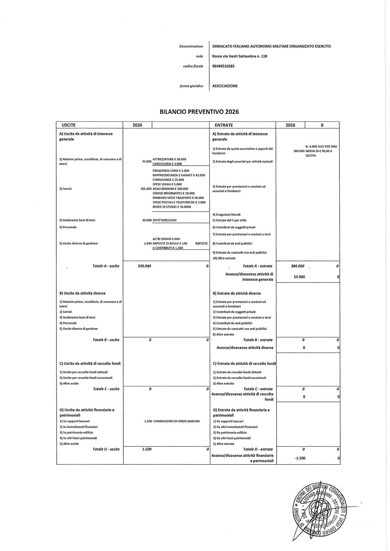 Per garantire la massima trasparenza nei confronti dei propri iscritti e di chi ne abbia interesse, è stata fortemente voluta e realizzata la predisposizione di uno specifico rendiconto preventivo.