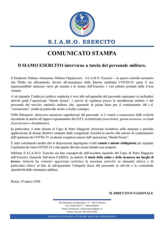SIAMO ESERCITO interviene a tutela del personale militare