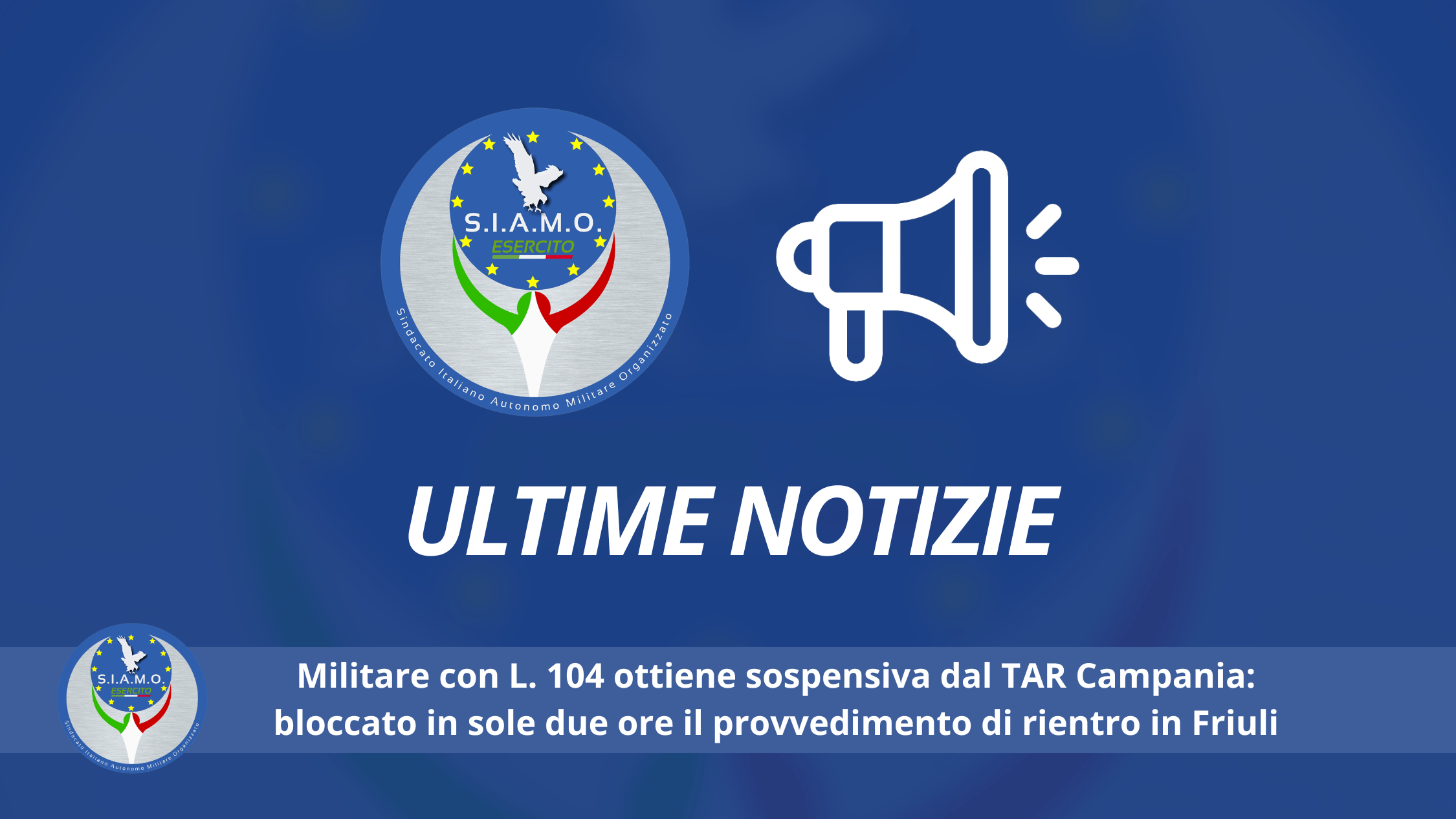 Militare con L. 104 ottiene sospensiva dal TAR Campania: bloccato in sole due ore il provvedimento di rientro in Friuli