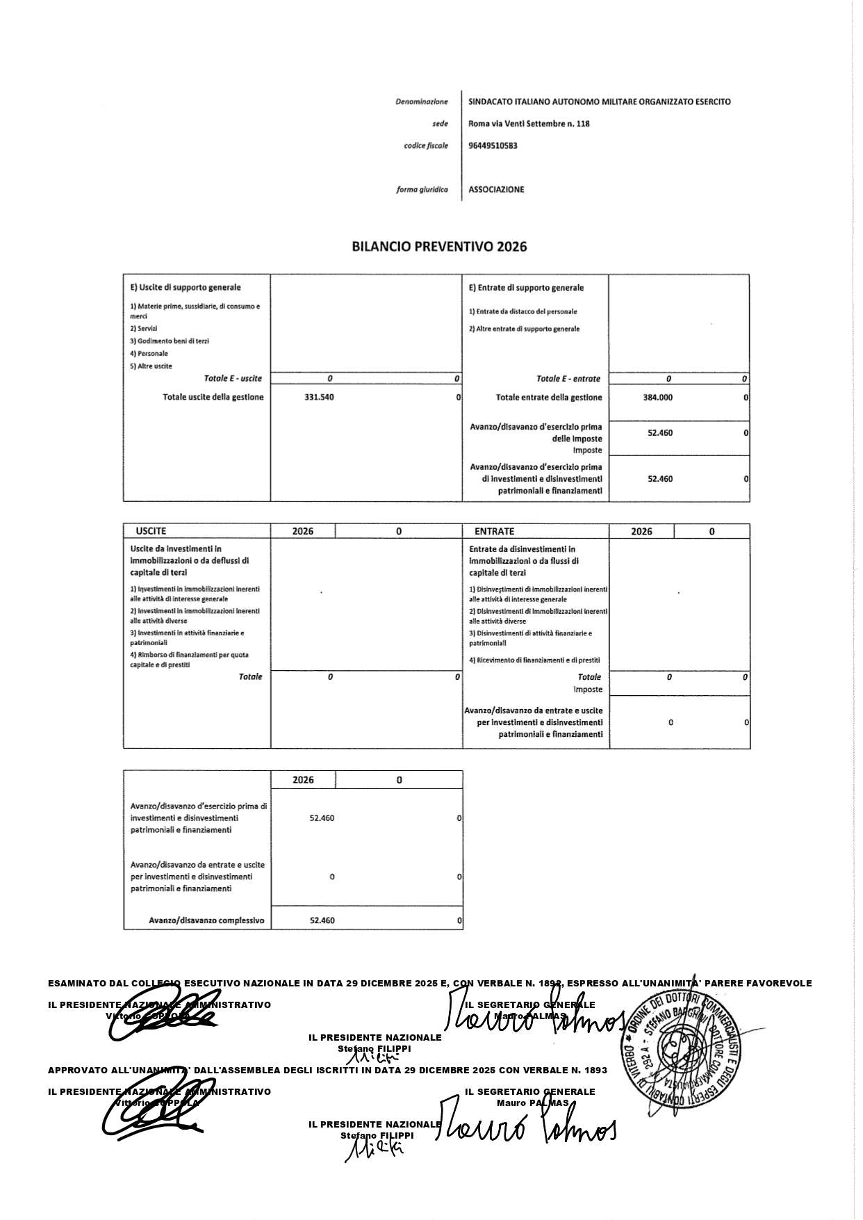 Per garantire la massima trasparenza nei confronti dei propri iscritti e di chi ne abbia interesse, è stata fortemente voluta e realizzata la predisposizione di uno specifico rendiconto preventivo.